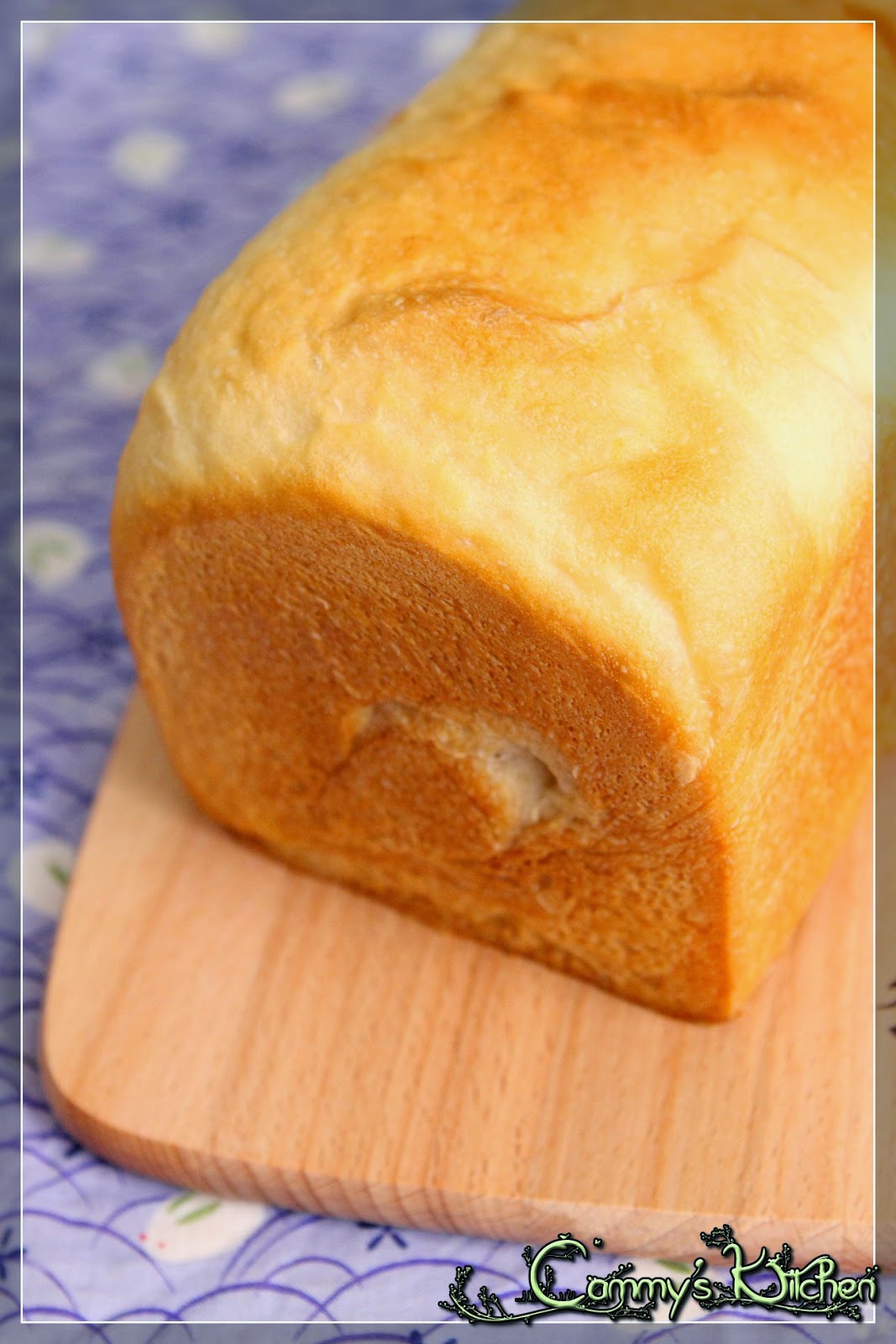 9) 出爐,抽掉蓋子,把麵包倒出來,放在架上待涼, 冷卻後才切片。